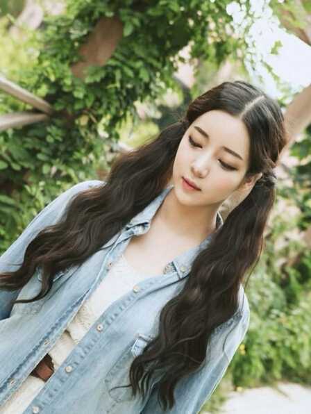 4、欧美小女生可以试试这种类型的卷发,蛋卷长发扎成两条马尾辫,有几分清纯甜美味道,减龄又有小女生的魅力。