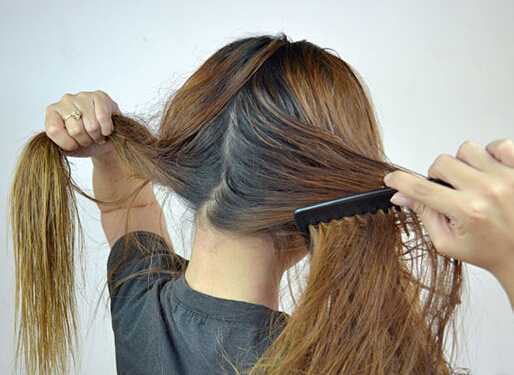 步骤2、为了让头发在干透的时候可以保持卷发形状,我们要往头发涂抹卷发凝露,顺序是从发根往发尾涂抹;