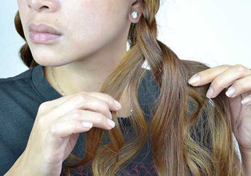 步骤7、待3到4个小时后,小心的拿掉橡皮筋,用手把辫子拆开,指尖轻柔的把头发梳开,让头发呈现漂亮的波浪状,注意,这里不宜强行或者用很大的力气把头发拉开。