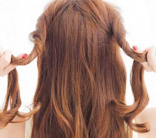 步骤一:从左右两侧分别取出两束头发,并扭转成发辫。