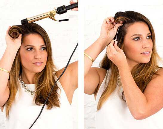 步骤二:如图所示,用直径约32mm的卷发棒把头发加热定型。