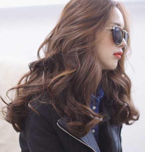 大波浪卷发图片介绍:韩式大波浪长发,比较适合颜值比较高的少女,中分刘海、染发、长发波浪卷,这样的搭配还蛮有芭比娃娃的感觉,可爱又甜美。