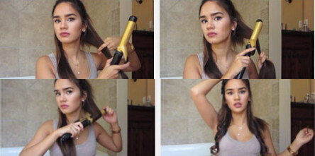 首先将头发理顺之后,选择一束秀发,将卷发器由上夹住发根拉直发尾,然后向内旋转2到3圈,停留八秒后就可以轻松完成一束长波浪卷发的造型,其实的发束按照此方法多次重复完成即可。
