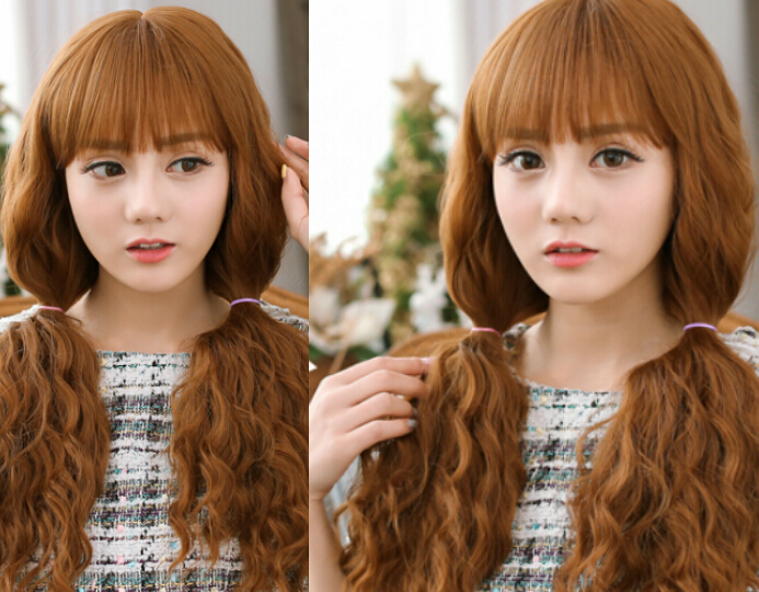 蛋卷头发型04》》》》》浅棕的发色靓丽自然,细烫类型的蛋卷头造型大大地添加了女生甜美可爱的气质,空气感十足的刘海以及双扎马尾的造型都非常地俏皮又有特色,简约又不简单,让人印象深刻。