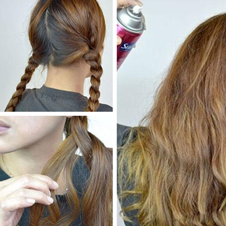 扎着辫子睡一觉,睡醒以后解开辫子,用手捉抓头发,让其分散开来,你可见头发呈明显的大波浪状,最后往头发上喷上适量的定型喷雾即可。