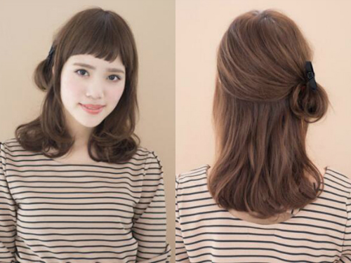 既甜美又俏皮的中长卷发半扎花苞头可助你减龄显嫩,小女生与轻熟女都值得一试,将半扎的花苞头固定在侧边,造型特别,很显个性,Jojot觉得简直不能更美了!