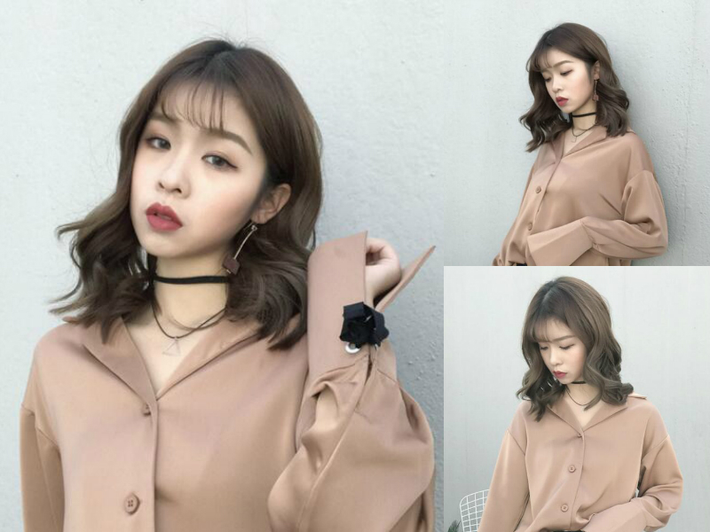 那些处于头发不长不短尴尬期的妹子,可以尝试下这款齐肩蛋卷头发型,二八分的刘海留出几缕发丝修饰额头,从脸颊处开始做蛋卷头的造型,十分修饰脸型,将一侧头发随意夹至耳后,好看的侧脸线条立马浮现,黑茶色的染发更显得女生的皮肤白皙。