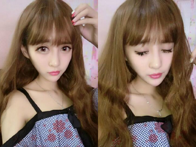 修颜减龄的齐刘海搭配小波浪卷长发发型更显清纯甜美。这个假发的发质看起来很柔滑,加上棕色的染发更是显得很有光泽,轻轻柔柔的及腰长发随性散落,稍带着卷烫后的蓬松感,刘海的修剪整齐而轻薄,看着很逼真又舒服。