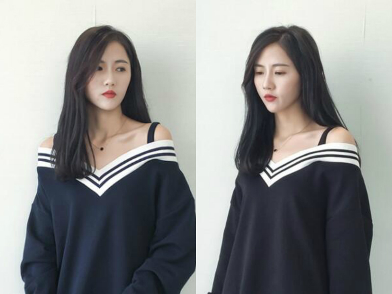 简单的中长卷发发型怎么打理出气质感呢?不妨试试把刘海三七侧分,头发的卷度无须过多,只在发梢处加入轻微的卷烫设计便可,如此更显得自然又特别。纯黑的发色不但显得妹子皮肤很白,更使妹子增添了一丝淡雅的气质,而露肩吊带的服饰搭配又在不经意中勾勒出性感韵味,很是吸引眼球的一款造型。