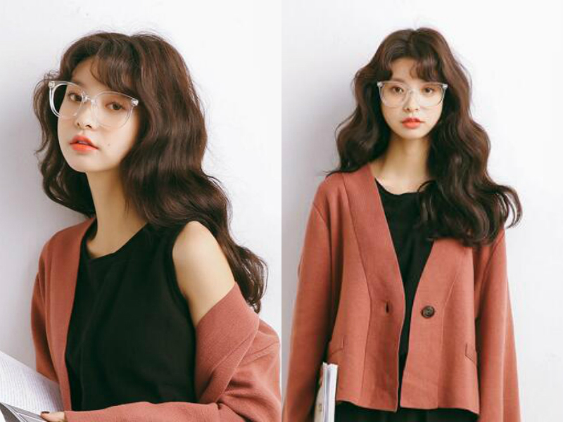 卷发有个厉害之处,经过卷发处理的头发好像发量突然增加了很多一样,变得轻盈膨胀,在发丝的衬托下显得妹子的头小小一颗,很是可爱。卷发的弧度从头顶滑落,发丝起伏的线条充满动感,加上深栗色染发更显优雅气质,一种旧时代风格油然而生。
