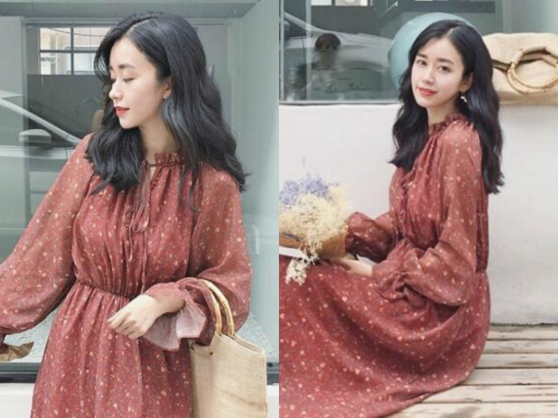 比较简约的一款日式中长蛋卷头发型,经典的黑发干净得体,经过卷烫的发丝充满线条感,侧面展现出女生柔美的一面,中分的刘海设计修颜显瘦,使女生本就漂亮的鹅蛋脸显得愈发精致了,搭配一条红色碎花连衣裙,与纯黑的发色相互衬托,让人油然而生一种岁月静好的感觉。