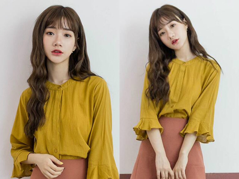 经过卷烫处理的波纹卷长发仿佛拥有了生命,变得健康而充满光泽,头发的卷曲程度大而深,使其自然的批垂于肩膀两侧,中分的刘海设计露出额头,看起来清爽透气,同样经过卷烫的刘海带着好看的弧度向两边翘起,整个发型衬托得女生端庄又优雅,颇有点欧洲名媛的风范。
