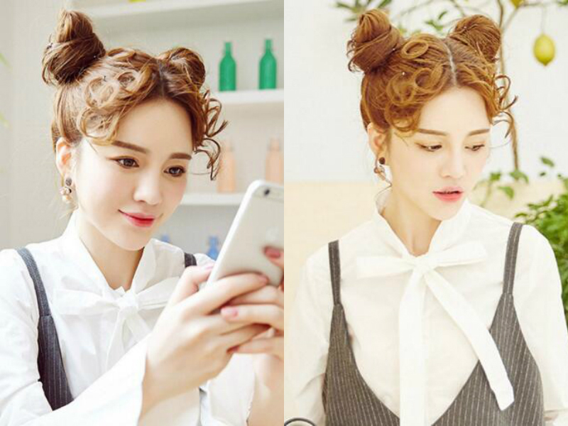螺旋烫就是卷发的样式像螺旋状呈现,把刘海烫成小卷略夸张稍不规则充满了时尚感,染成亚麻金色的头发也有修颜显精神的效果,扎个流行的丸子头哪吒头,配上小耳饰,不用再怕显老变道姑头驾驭不了,真是减龄洋气。