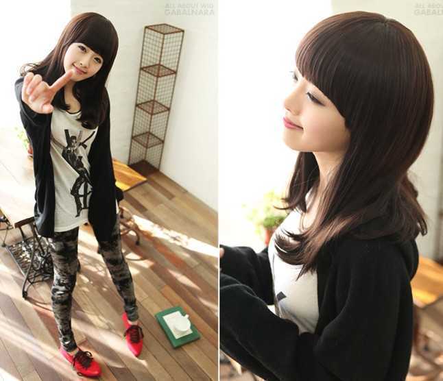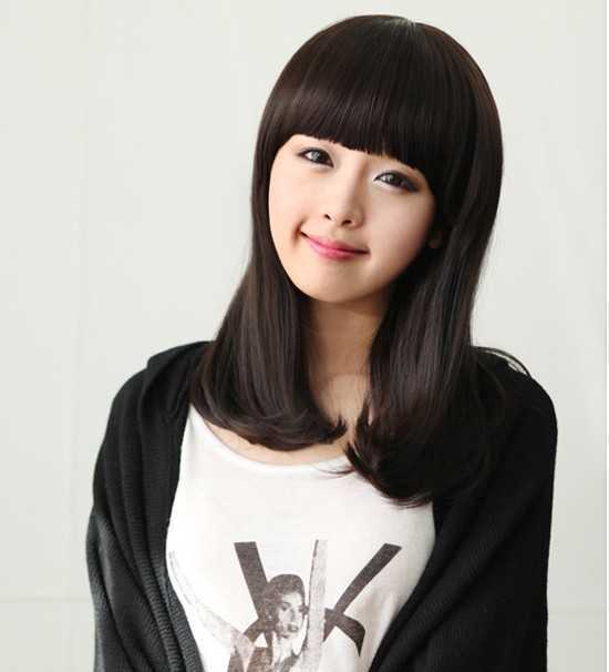 齐刘海的梨花头,中长发的发型,很多方脸的女生都喜欢的俏皮look。有点邻家女孩的乖巧素雅气质,讨人喜欢~~