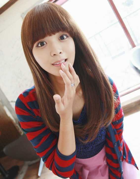 甜美的齐刘海直发深得人心哦!方脸女生的最爱发型!清新迷人又很淑女!染点栗色真心好看!方脸的女生赶快学习吧!