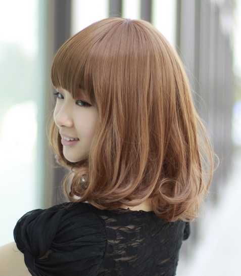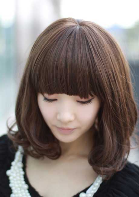 齐刘海内扣梨花头,中长的梨花+内扣+齐刘海,修饰脸型超好的一个搭配,齐刘海可以遮较宽的额头,蓬松感中长的内扣梨花,制造空气感的效果超好哦,可以缓和脸部的尖线条。