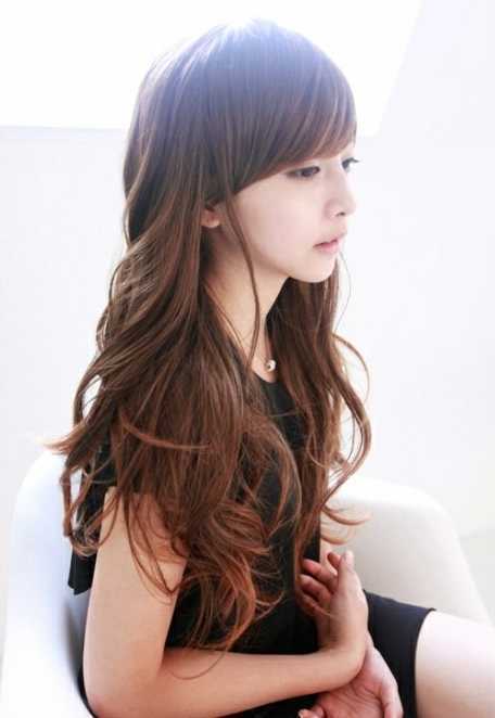大波浪卷发,短短的斜刘海,衬托着小脸蛋,显得清秀又甜美,其实小脸的女生没什么烦恼,斜刘海和小脸型搭起来显得清纯又甜美。
