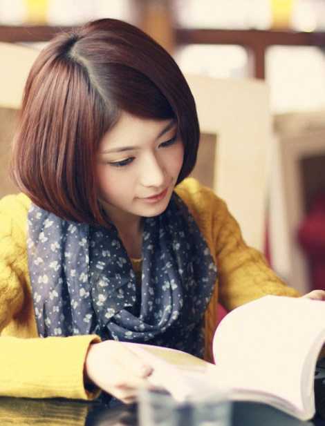 小脸MM其实还是蛮适合斜刘海的,显得甜美又温文优雅,黄棕色的头发,肤色显得好白,