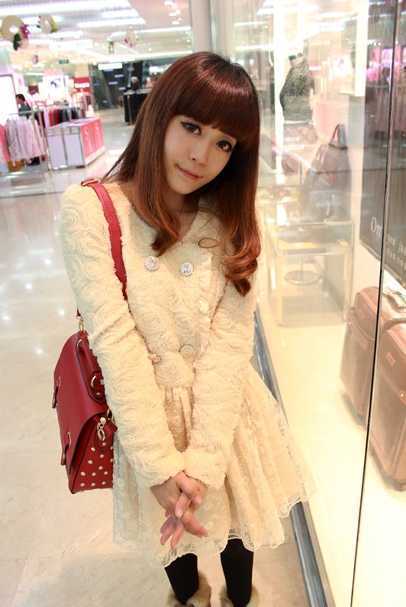 齐齐的刘海搭上中长的卷发,特别适合椭圆形的脸蛋,这位美女就是了,