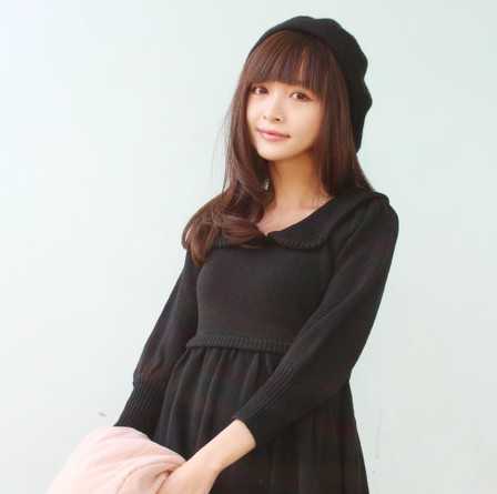 头上戴着一顶毛呢帽子,十足一个公主哟,超好看哦!赞一个吧!