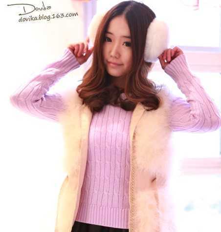 方脸型MM最适合的发型之一哦!戴上一个白色耳罩,甜美气息流露!