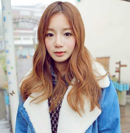 中分刘海,两颊自然卷的发尾,有修饰脸型效果,看上去很美哦!棕黄色的发色衬托着脸颊很白皙。
