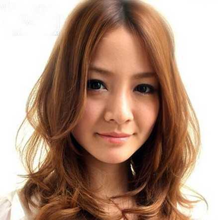 一般圆脸MM留中分或者是斜刘海会有比较好的修脸效果,然后两边的头发可以做成波浪卷,像一些往外翻的波浪卷具有拉长脸型的作用,也可以试试,2013新年来一个大改变吧!