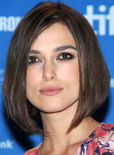 侧分的刘海,bobo头的直发发型设计,栗色的发色,柔顺直垂过下巴的刘海,完美的显瘦了脸蛋,很干净利落的气质又不失时尚优雅哦!