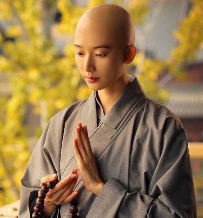 《天机•富春山居图》最新剧场爆照,林志玲这款光头尼姑形象,剃光头的她,精致的五官凸显出来,十分深刻逼人,此时此刻的她显得十分宁静,祥和。