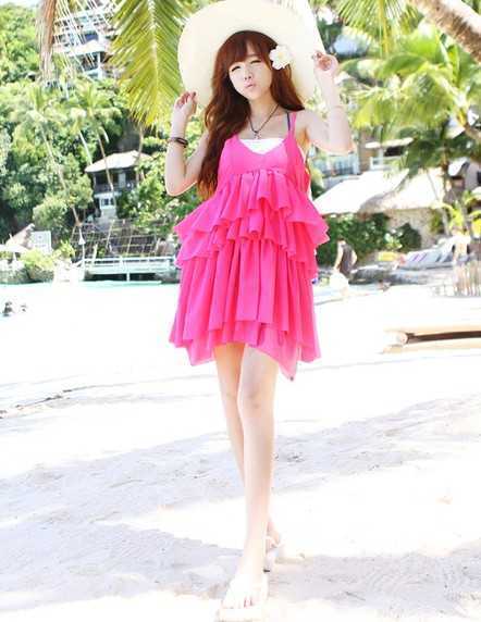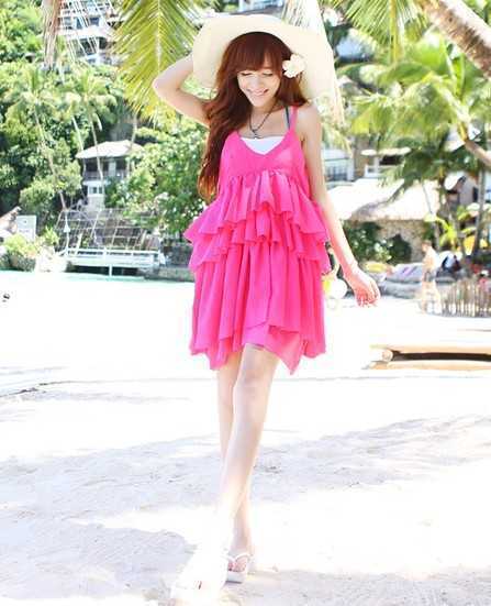 遮阳帽、短背心裙,这样的搭配上街超赞的!这位妹子顶着一头染色的长烫发,超美的!上街一下子就能成为焦点哦!
