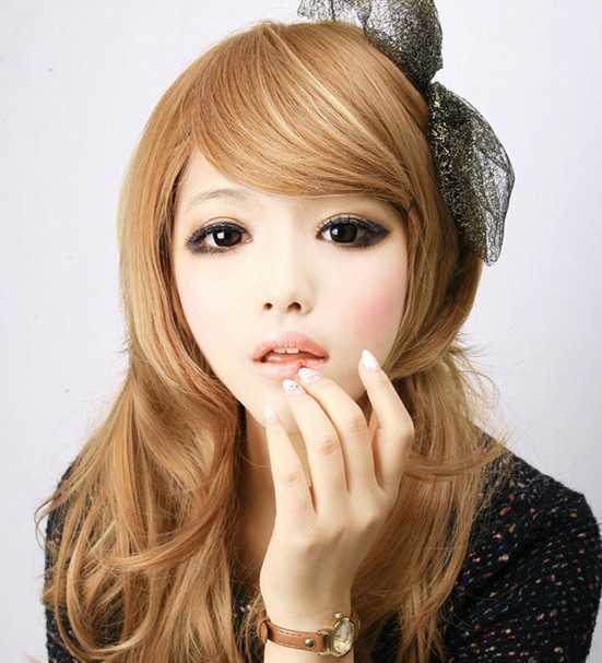 非主流女生最爱的卷发,日本最流行,轻薄俏丽的刘海,装饰在头发上的蕾丝蝴蝶结,甜美、可爱,自然蓬松的卷发散落在肩上,超美,圆脸妹子很适合。