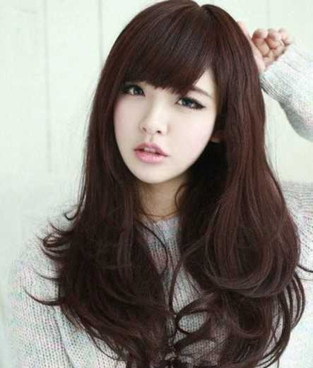 超赞的女生发型,选择深棕色的发色,为这款发型增加时尚感,弧度大卷的发尾显得十分个性,而齐刘海不仅能够减龄,还能完美修饰脸部,很酷很抢眼,鹅蛋脸的女生不妨一试。