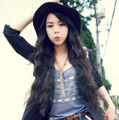 很有范的一款发型,长卷发更适合鹅蛋脸,而自然黑的发色,低调中不乏时尚,斜分刘海的把一双灵动的大眼睛衬托更加明亮了,搭配时尚的小黑帽,街头达人的形象就这样散发着。