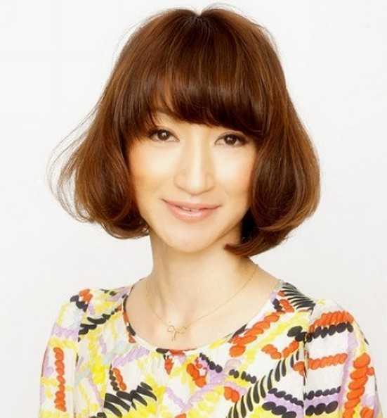 染浅棕发色既能把女生白皙的肌肤完美呈现,也符合时下流行元素的风格,额前颇有弧度的齐刘海,更是将可爱的短卷发型发挥得淋漓尽致,而弧度的发尾长长脸型修颜得恰到好处。