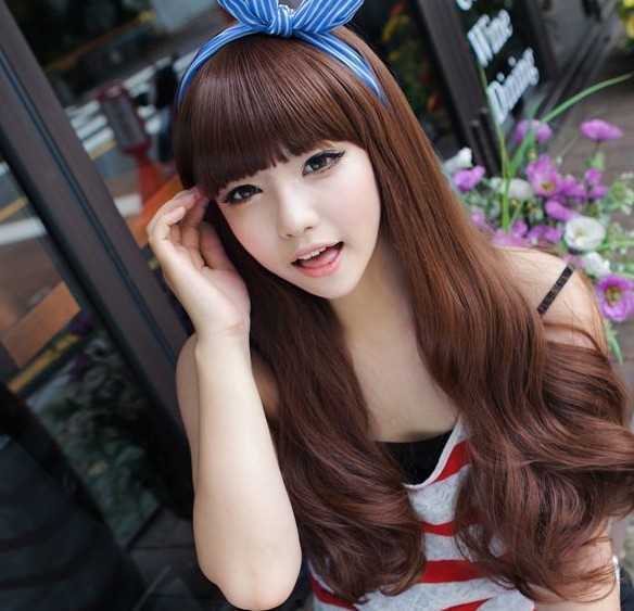 换上一个美美的齐刘海发型,减龄扮萌就这么如此简单,厚重的刘海遮住大额头,完美修颜女生的鹅蛋脸型,柔顺长发,清新自然,配个蝴蝶结发饰,一条条纹连衣裙,美翻了!