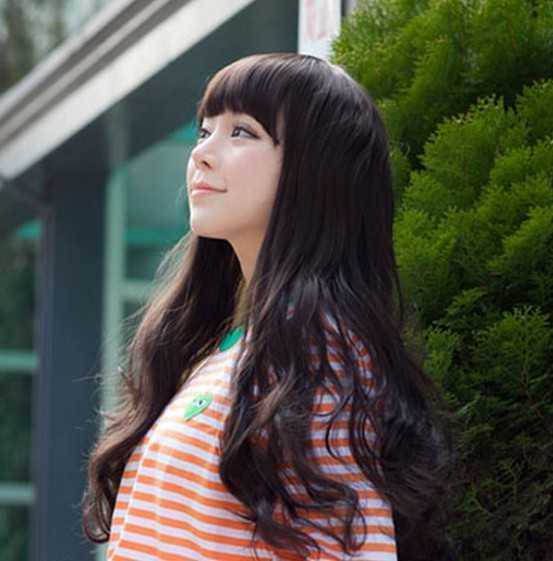 贴服顺滑的齐刘海,随意搭肩的黑色长卷发,不仅对鹅蛋脸进行一番修颜效果,还完美尽显着中学生那种独有的柔美清新感,非常迷人哦!