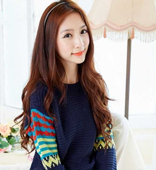甜美系列的一款长发,很适合长脸型的女生们,大片搭肩的长卷发,营造出少许的唯美浪漫气息,贴服的发束瘦脸立马见效,搭配美美的发箍,十分的甜美时尚。