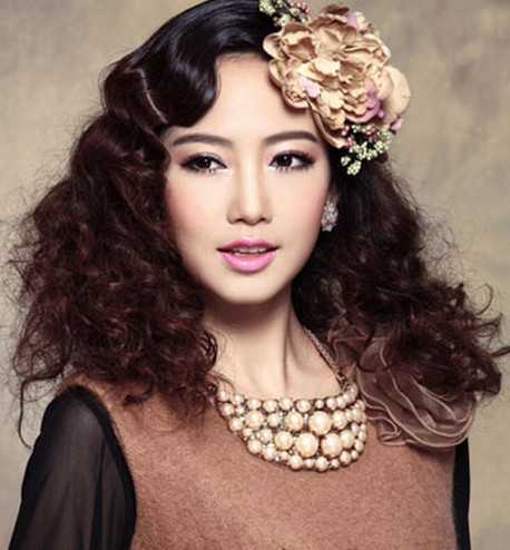 充满复古系气质的卷发造型,完美彰显出性感又成熟的淑女感觉,蛋卷的发束,修饰女生的圆脸型,侧搭的精美发饰,一个轻烟熏妆,娇美妩媚之感!