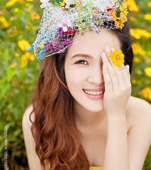 清新浪漫的氛围,侧披的长蛋卷烫发,与这个小脸美女来个完美的优雅美态展示,俏皮可爱的动作,顶部的花环发饰装扮下,无比的养眼显气质哦!