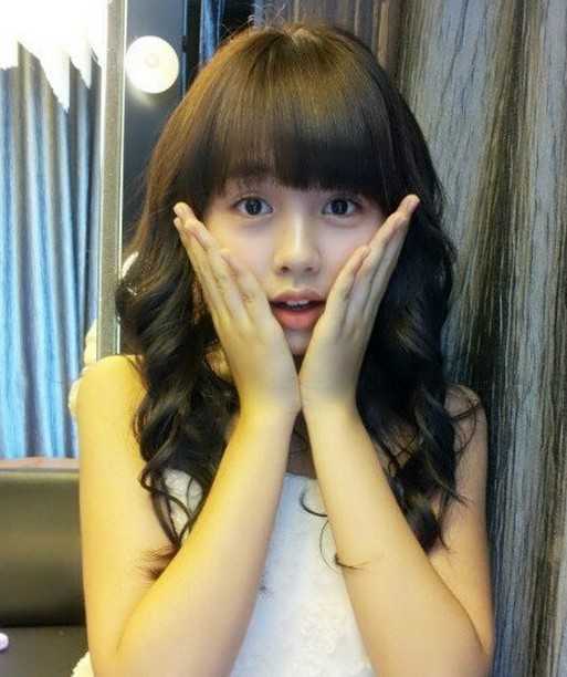 萝莉范的中长卷发发型,搭配上可爱呆萌的齐刘海设计,即使是方脸也完美呈现小脸好看效果,没有任何的修染发色,却是自然气质美。