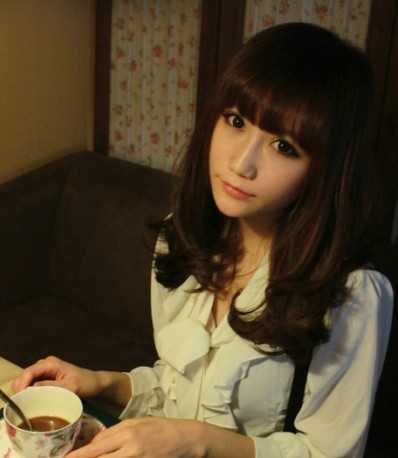 梨花烫发当然是小脸MM的首选发型啦,像这样内扣式发尾再结合上稀薄齐刘海的造型设计,搭配白色衬衫,能不是甜美好看的尽显吗?