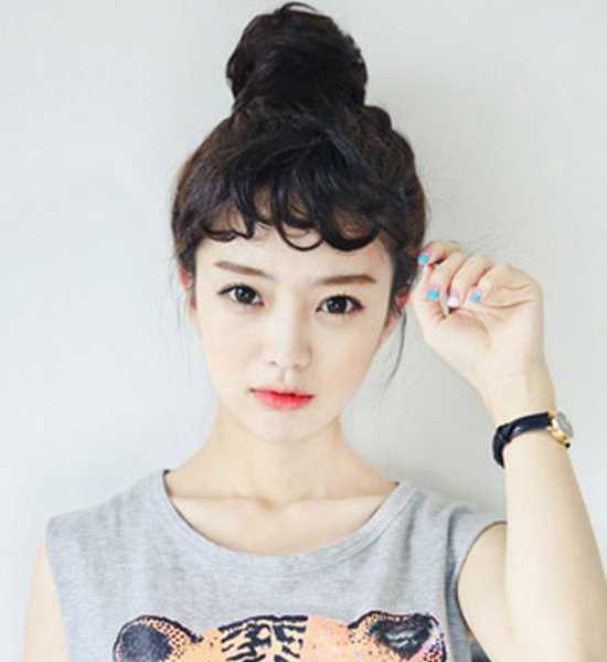 自然而独特的卷曲齐刘海,个性还能让小脸呈现最完美效果,高高的丸子头扎发发型,是不是感觉更多了一份随性和活泼感?