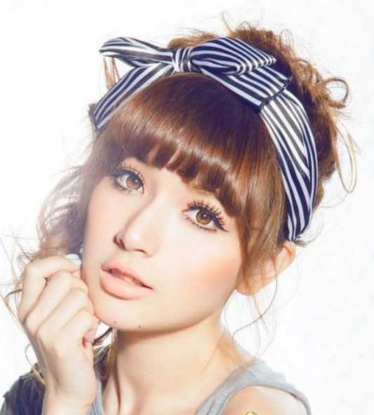 碎发的齐刘海与蓝色条纹的发带相结合,显露出稚嫩的青春活力,小脸也正好完美凸显,再看凌乱的编发造型增添了几分优雅魅力感,马上减龄十足!