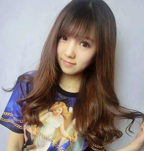 可爱的圆脸妹子,一款简单好看的中长卷发就能完美修饰脸型,碎发的刘海头发搭配栗色染发,可爱更显时尚了。