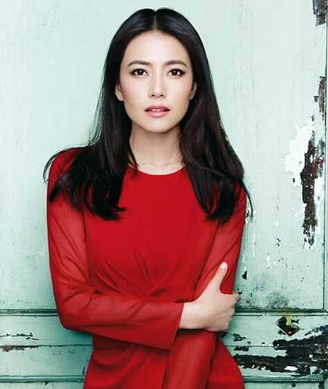 齐肩的中长发发型,给人超女神范儿,依然选择中分的刘海来修饰椭圆形脸,好看显气质,搭配红色连衣裙,相当迷人魅力。