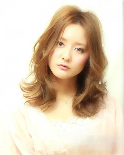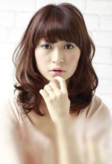 发型点评:一款十分清新迷人的齐刘海梨花头发型,内扣的齐刘海凸显一双魅力电眼,两侧的蓬松长卷发修饰出一张精致的瓜子脸,搭配棕色的染发,令你的淑女气质大大提升。