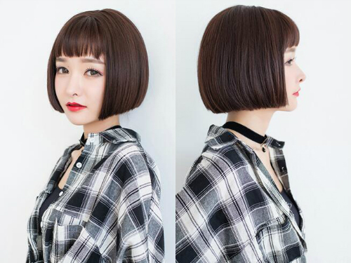 短短的齐刘海波波头可爱甜美,可将小脸MM的五官显衬得更加精致,修剪得平整的发尾很有特色,正好修饰你的小脸。