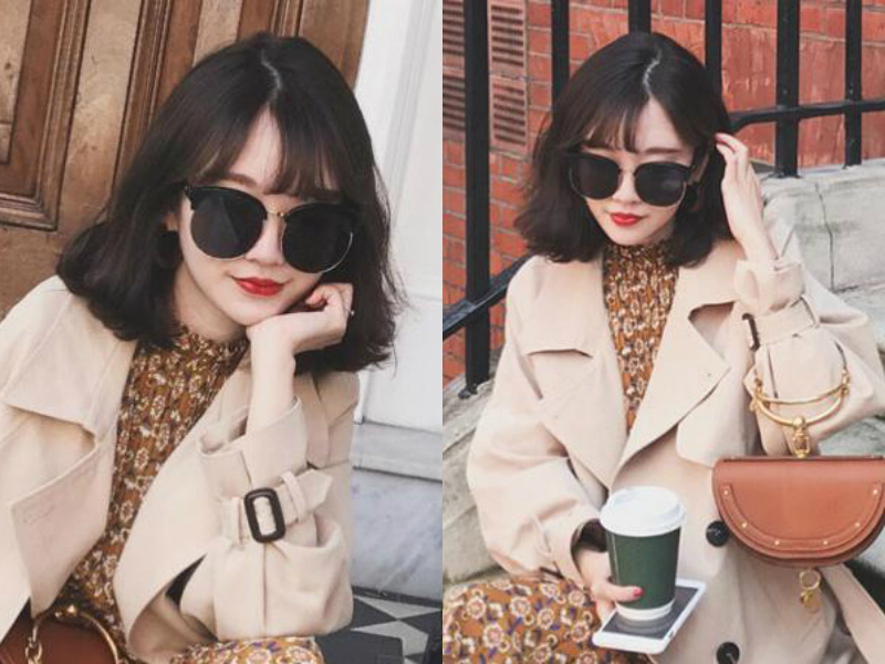 任何脸型,在大墨镜的衬托下都会看不出,薄薄的空气刘海恰到好处的遮挡脑门,显得清新透气,接近发尾的地方通过烫发处理变得很是蓬松,戴上黑框大墨镜,刚好突出女生尖细的下巴。