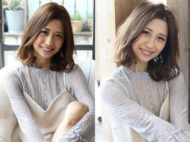 如果你是宽脸但下巴又比较尖的话,小编建议你优先考虑一下这款梨花头发型。中分的设计使脸颊两侧都被头发遮挡,宽脸仿佛消失了一般,而且垂在肩头的发尾融入卷发效果,使发丝蓬松卷翘,一下子就衬托出妹子尖细的下巴。