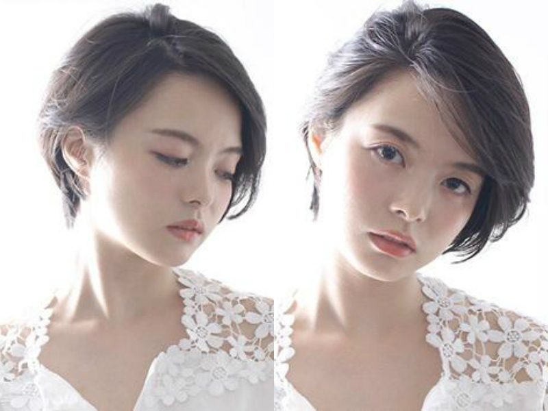 超有个性的一款女生短发发型,头发修剪得极短,发尾打薄紧贴在脖子后面,露出女生修长的脖子之余更在视觉效果上拉长了脸型,偏分的刘海设计打造出不对称感,这恰恰有利于对脸型的修饰,几乎整张显露出来的脸蛋反而降低了宽脸的存在感,只觉得妹子清爽中带着一丝帅气feel。